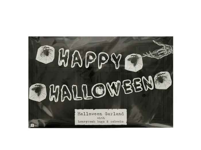 Make your Halloween celebration unforgettable with our Spooktacular Halloween Banner! This festive décor piece features black and white letters spelling out 'Happy Halloween' strung along wavy elastic cords.