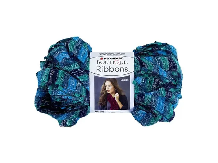 Create beautiful accessories and home décor with this Sparkly Blue & Teal Ribbons Yarn. It features a stunning blend of blue and teal striped, netted yarn accentuated with sparkling blue fibers.