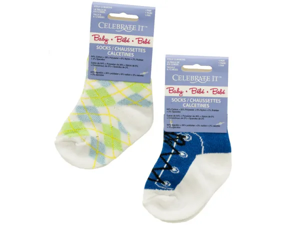 This 3-piece Boys' Argyle Dress Socks Set is perfect for both dressing up and everyday wear. The socks are designed with a soft, stretchy woven fabric and feature a stylish small argyle pattern. Each pair is equipped with elasticized cuffs for a comfortable fit.