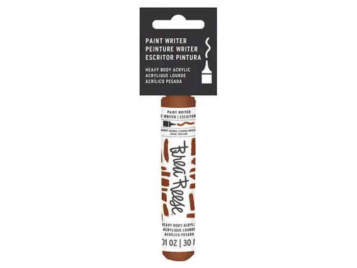 If precision is essential in your craft, this Heavy Body Acrylic Paint Writer is perfect for the job. This Paint Writer is in color Burnt Sienna. It contains 1.01 ounces of paint and has a cap to prevent paint from drying when not in use. The cylinder container is approximately 5" x 0.85" in size. It comes packaged 1.75" x 2" hanging insert card.