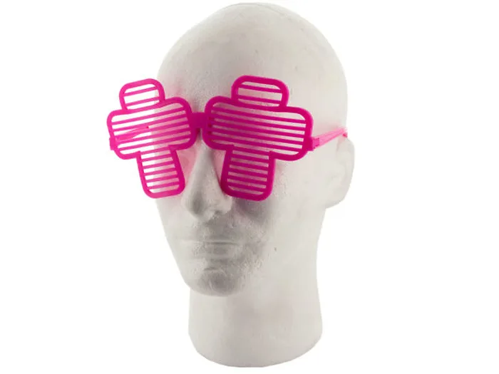 Great for giving away at your next party, these Colored Cross Party Favor Shutter Shades feature fun colored plastic sunglasses with cross-shaped frames and cutout slatted lenses. Includes 12 pairs of shades in assorted colors. For ages 3 and up. Comes packaged in a poly bag.