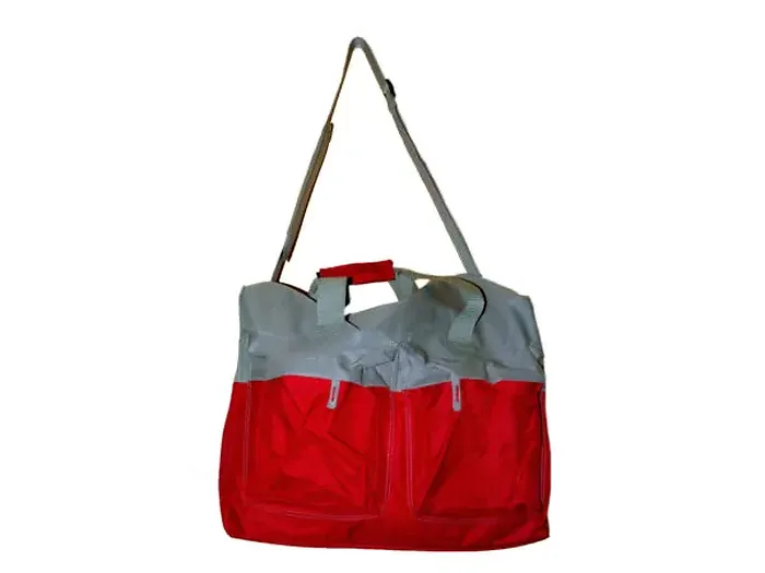 Versatile Red and Tan Multi Pocket Travel Duffel Bag