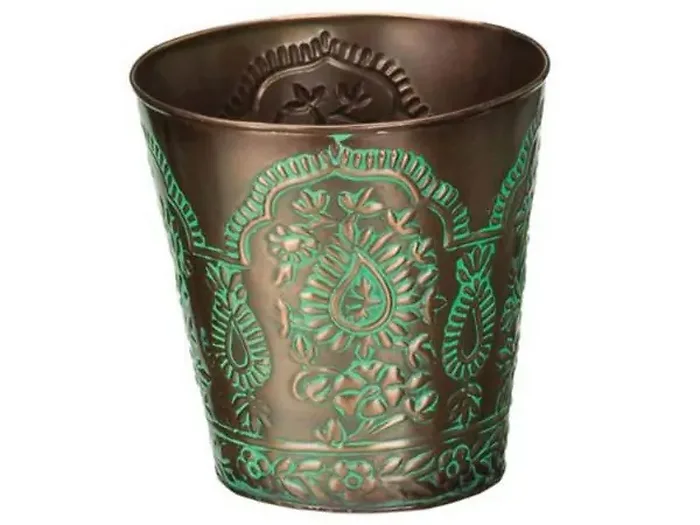 Decorative 4-Inch Tapered Metal Planter - Paisley Design