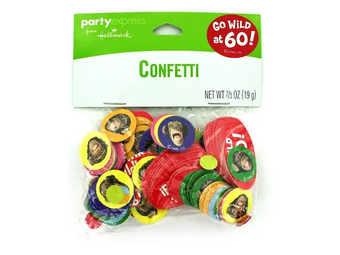 Celebrate turning 60 with a wild twist! Our delightful 60th Birthday Monkey Party Confetti adds a playful touch to your decorations. This assortment includes three fun styles of confetti: small round dots measuring 3/8" in diameter, circle confetti featuring cheerful monkey faces at 3/4" diameter, and oval pieces that read "Go wild at 60!" measuring 1 1/2" x 13/16". Each piece sports a vibrant red backing with striking white text. Perfect for party tables, invitations, or any festive celebration!