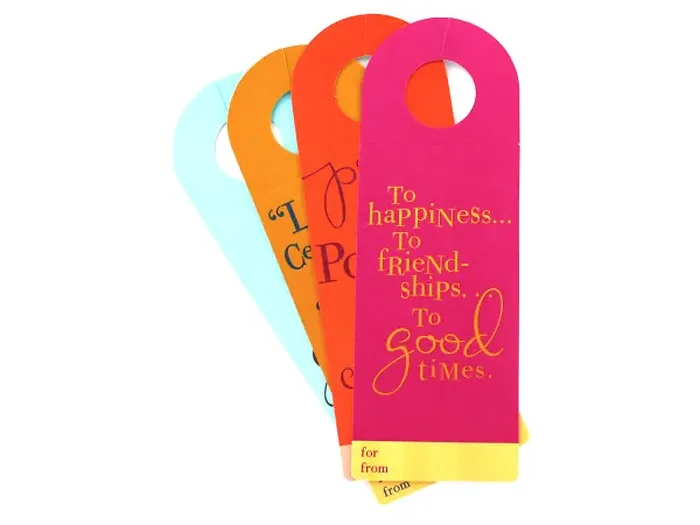 Add a personal touch to your wine gifts with our stylish wine bottle tags. Perfect for any occasion, these tags fit effortlessly over the neck of the bottle.