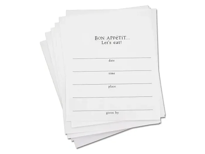 Create unique and personalized invitations for your dinner party with these custom inserts. Each insert features the phrase "Bon Appetit ... Let's eat!" and is designed to fit seamlessly into your card designs. Perfect for adding a special touch to your invitations, these inserts measure 4 1/2" x 5 1/2".