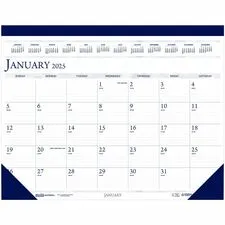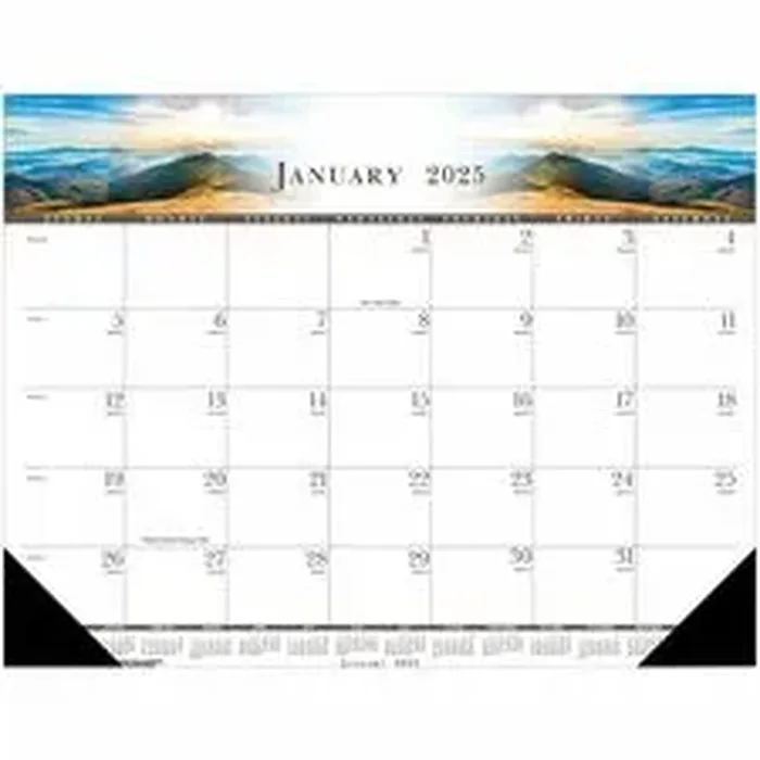 House of Doolittle Recycled Illustrated Desk Pad Calendar - Julian Dates - Monthly - January 2025 - December 2025 - 1 Month Single Page Layout - 22" x 17" Sheet Size - 2.38" x 2.88" Block - Desk Pad - White - Leatherette, Paper - 1 Each