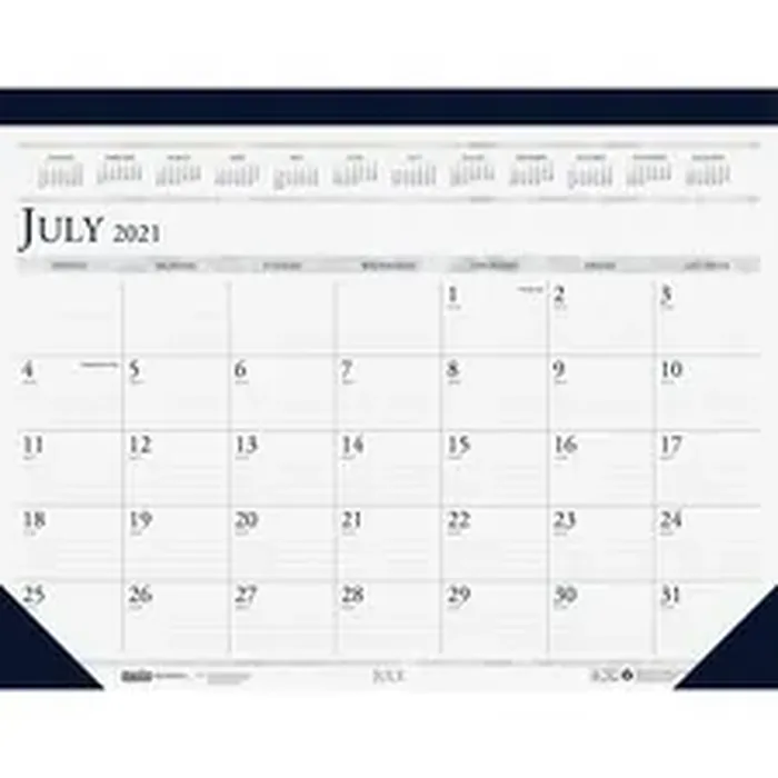 House of Doolittle Academic Desk Pad Calendar - Academic - Julian Dates - Daily, Monthly - 1.2 Year - July 2021 till August 2022 - 1 Month Single Page Layout - 2.13 x 3 Block - Desk Pad - Blue - Simulated Leather, Vinyl - Perforated, Reference Calendar, Non-refillable - 1 Each