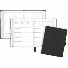 Recycled Non-Dated Planner lets you organize your planner when and how you choose. Printed on 14 mil, recycled synthetic paper cover is waterproof, tearproof and weather-resistant. Undated planning pages include 52 weekly spreads and 12 monthly spreads. Two-page-per-week features ruled daily entries from Monday to Sunday, a notes section and space at the top to write in the specific week details. Two-page-per-month offers unruled daily blocks Monday to Sunday, ruled notes section, highlighted weekends and spaces to write daily details and the month. Planner includes a double-sided storage pocket, class schedule, commonly confused words, metric/English conversions of measures and address/phone/email and note pages. Strong, 90 percent recycled wire binding firmly keeps the planner intact throughout the year. Planner is printed in soy inks on 100 percent post-consumer recycled paper.
