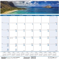 Wirebound monthly planner features a two-piece, embossed, simulated leather cover for a professional look. Planning pages range 24 months from January of one year to December to the next year. Two-page-per-month spreads include large ruled daily blocks (2-1/8" x 1-7/8") for detailed notes; holidays; count of days/days remaining; Sunday-through-Saturday scheduling; a ruled notes area along the side; and past and future months reference near the top right corner. Nonrefillable planner is printed with soy ink on paper made with a high percentage of recycled material.