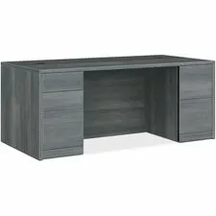 General InformationManufacturer:The HON Company Manufacturer Part Number:105891LSA1 Manufacturer Website Address:http://www.hon.com Brand Name:HON Product Series:10500 Product Name:0500 Series Sterling Ash Laminate Desking Marketing Information:Double-pedestal desk belongs to the HON 10500 Series Wood Laminate Furniture, a versatile collection for any office arrangement. Smooth, flat edges and a full modesty panel deliver a clean, streamlined look. Scratch-resistant, spill-resistant and wear-resistant, Sterling Ash laminate on strong inner-frame construction assures trouble-free performance and long life. Desk features two full pedestals with five-sided drawer construction for added strength and easy alignment. One pedestal includes two box drawers for supplies and one file drawer for filing. The other pedestal includes two file drawers. All file drawers include integrated hangrails for side-to-side letter-size and legal-size hanging folders and front-to-back letter-size filing. Drawers operate on full-extension, ball-bearing suspension. Desk also has interchangeable, core-removable lock for quick, easy rekeying and two 3" round grommets to route and hide wires and cables. Center drawer for the desk is sold separately.