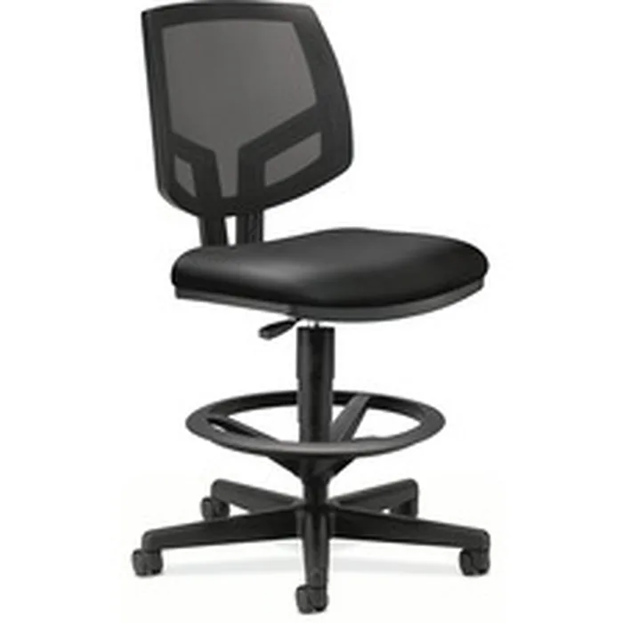 Volt task stool offers a unique combination of style, scale, comfort and functionality. Its real value is in its flexibility with the ability to work in virtually any environment. Generously proportioned seat cushion and natural cooling of a mesh back are welcoming to every body. Adjustable footring and extended 360-degree swivel allow movement in any direction. The footring adjusts in height easily with a simple knob for the best position for your legs and feet. Pneumatic seat-height adjustment ranges from 23-7/8" to 32-3/8". The five-star base includes 2-1/2" dual-wheel, hooded casters for easy chair movement. The cushioned seat is covered in durable leather. Seat measures 19" wide x 18" deep. The back size is 18" wide x 18-1/2" high. Stool also features a plastic outer back, and frame is available in black only. An arm kit (5795) is sold separately. Stool meets or exceeds applicable ANSI/BIFMA requirements.