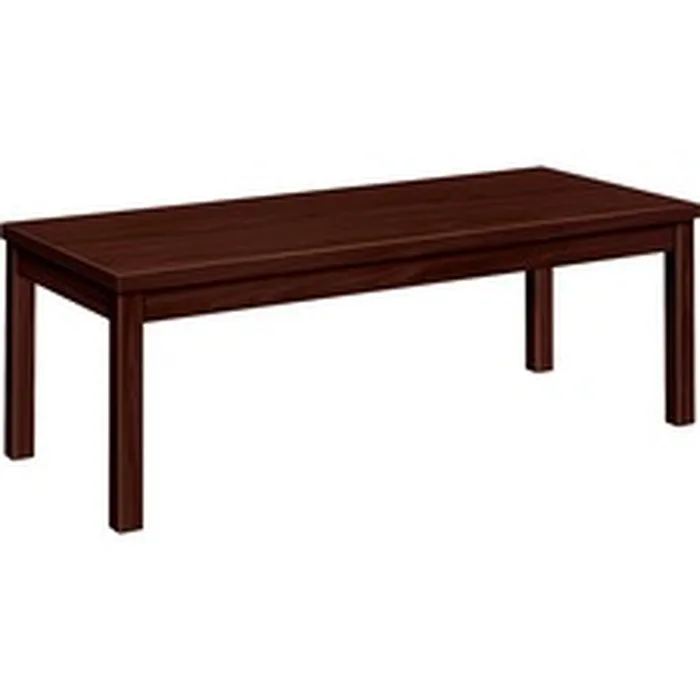 Coffee table features top-over-apron and square corner detail that complements many different furniture designs. It is ideal for high-traffic areas such as reception rooms and lounges. Top and aprons are made of abrasion-resistant, stain-resistant, thermal-fused Mahogany laminate over durable, 1-1/8" thick, solid-core, high-density particleboard. Coffee table meets or exceeds applicable ANSI/BIFMA standards.