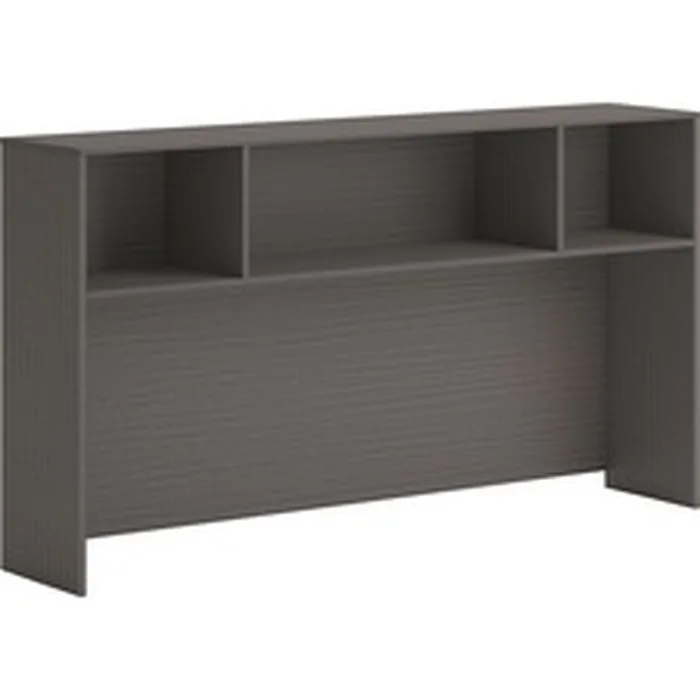 This 72" wide desk hutch is part of the HON Mod Desk Collection that delivers simplicity and adaptability to enhance your productivity. The contemporary design feels perfectly at home in either a private office or an open floor plan. Add the Mod desk hutch to a variety of Mod desks or credenzas to create more storage without increasing the footprint. Desk hutch mounts easily. Add optional Mod laminate doors (sold separately) to help secure the contents and guard your privacy. Durable, Slate Teak laminate is scratch-resistant, spill-resistant and stain-resistant. Slate Teak matches other Mod elements (sold separately) so you can create an office suite to fit your needs.