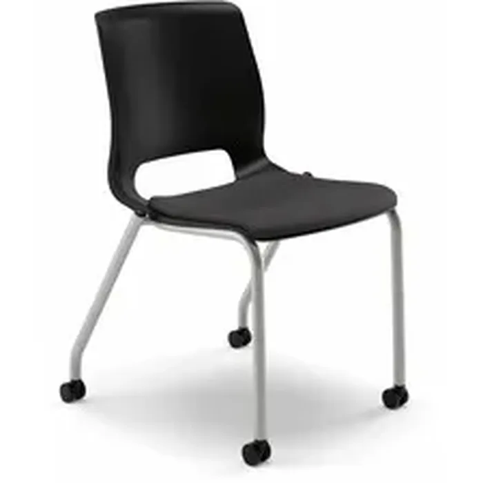 Product InformationChair/Seat Type:Stacking Chair Maximum Load Capacity:300 lb Seat Material:Fabric Seat Color:Black Back Material:Plastic Back Color:Black Arm Color:Black Frame Material:Reinforced Resin Frame Color:Platinum Metallic Armrest:No Casters:Yes Application/Usage: