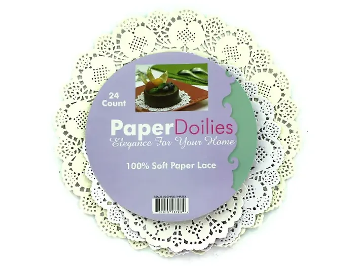Each pack includes 24 doilies, packaged in a convenient hanging poly bag for easy display and storage.