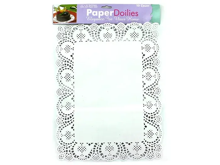 Enhance your dining experience with our rectangular lace paper doilies. Perfect for use as stylish placemats or to elegantly display dishes on a buffet table, these doilies add a touch of charm to any occasion. They also serve as a fun and creative material for children's art projects.