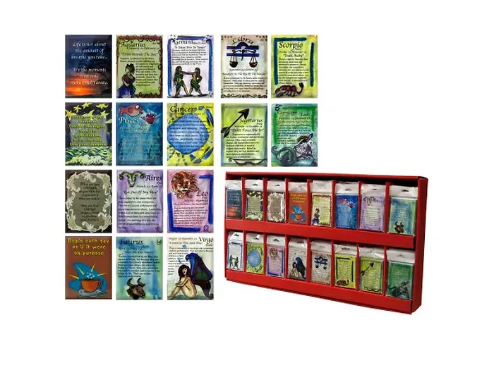 Each magnet showcases vibrant artwork along with an insightful description of each astrological sign. In addition to the zodiac designs, we include four extra magnets featuring inspirational messages to uplift and motivate. Each magnet is individually packaged, neatly arranged in a countertop display for easy presentation. With a total of 16 unique designs, each design comes with 24 pieces, totaling 384 magnets in the display.