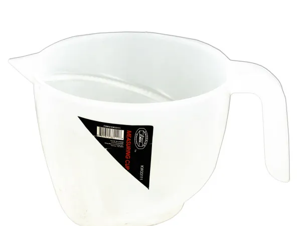 This stylish measuring cup combines functionality with a modern design, making it a perfect addition to any kitchen. Made from durable clear plastic, it features a convenient slanted spout for easy pouring and a comfortable black handle. The cup includes clear markings for accurate measurements and can hold up to 2 cups (500 ml).