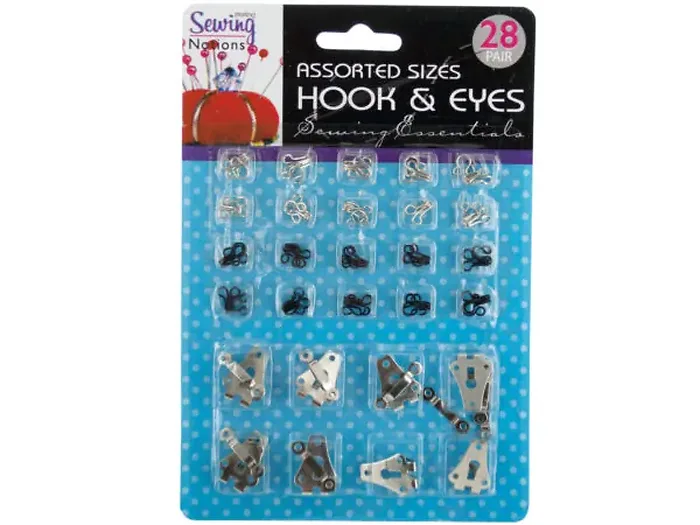 This Deluxe Sewing Hook & Eye Set is a must-have for any sewing enthusiast. It includes 28 pairs of metal hooks and eyes in two sizes and styles to accommodate your sewing needs.