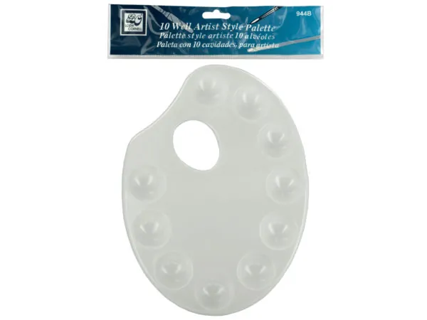 Perfect for aspiring artists, this Watercolor Paint Artist Palette features a durable plastic palette with 12 paint colors, a cutout hold for easy holding, an embedded mixing tray and a nylon bristle paint brush. Measures approximately 10" long x 6.75" wide with a 5" long paint brush. Comes shrink wrapped.