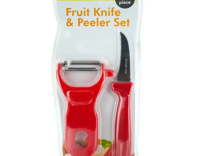 Prepare your fruits efficiently with the Compact Fruit Knife & Peeler Duo Set. This essential 2-piece collection includes a hand peeler featuring a durable metal blade and an ergonomically designed plastic handle for optimum grip. The set also includes a paring knife crafted from stainless steel, designed for precision cutting with its contoured plastic handle. Ideal for everyday use, both tools are dishwasher safe for easy cleaning.