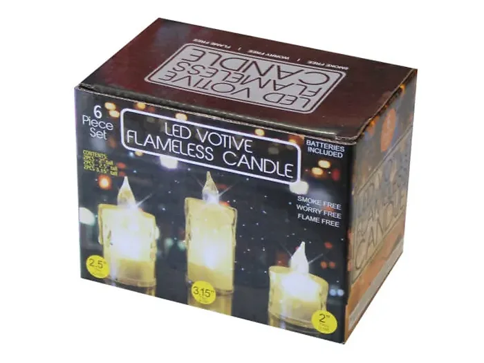 Crafted from durable hard plastic, they feature intricate details including a realistic flame and wax drips. This set includes six candles with heights of 2 inches, 2.5 inches, and 3.15 inches, offering versatility for any occasion. Each candle has a convenient on/off switch and comes with batteries included.