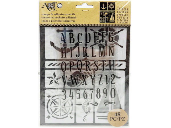 Each stencil measures approximately 5.25" x 9" and is packaged in a poly bag with a header card for easy storage and organization.