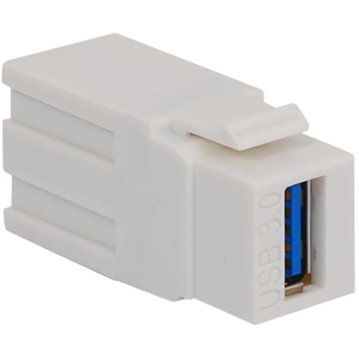 - White USB Keystone Jack- Hi-Speed USB (Universal Serial Bus) connectors are ideal for connecting a wide range of peripherals such as video, audio, infrared, and computer equipment in commercial and residential applications- USB 2.0 and backwards compatible to v1.1- Data rate transmission of up to 480 Mbps- Compatible with all of standard keystone wall plates and Decora inserts