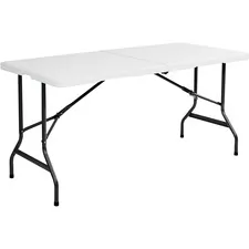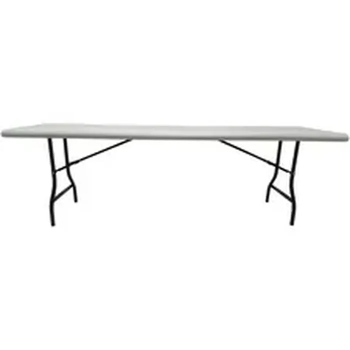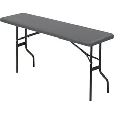 Economy folding table is made for heavy-duty use indoors or outdoors yet is 30 percent lighter than standard folding tables. Capacity is 2,000 lb. evenly distributed. 2" tabletop is made of durable, blow-molded, high-density polyethylene that is dent-resistant and scratch-resistant. Tubular legs are made of heavy-gauge steel with a powder-coat finish. Legs fold into recessed cavities beneath the table. Folding table is designed to nest with other Iceberg IndestrucTable Too tables when stacking to allow maximum storage capacity.