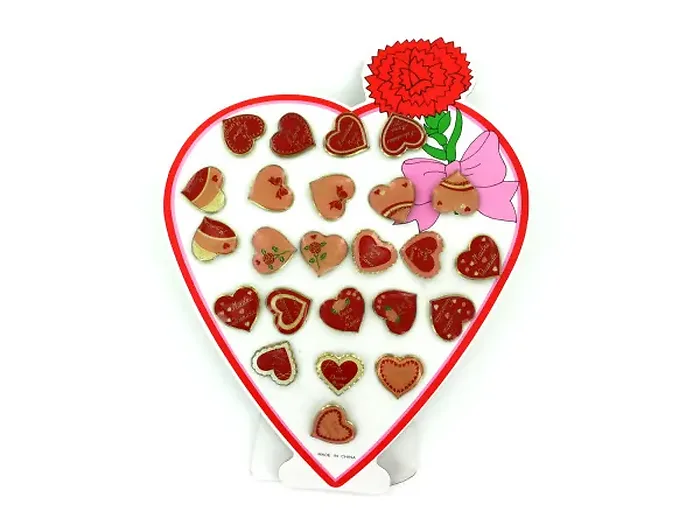 Show your love and appreciation for mom with this delightful heart-shaped pin set. Each of the 24 pins features a touching Spanish message, perfect for any occasion to express how special she is. The pins are crafted in a charming heart design and come with a convenient twist on/off backing for easy wear. The heart-shaped card includes an easel stand, making it an adorable display piece.