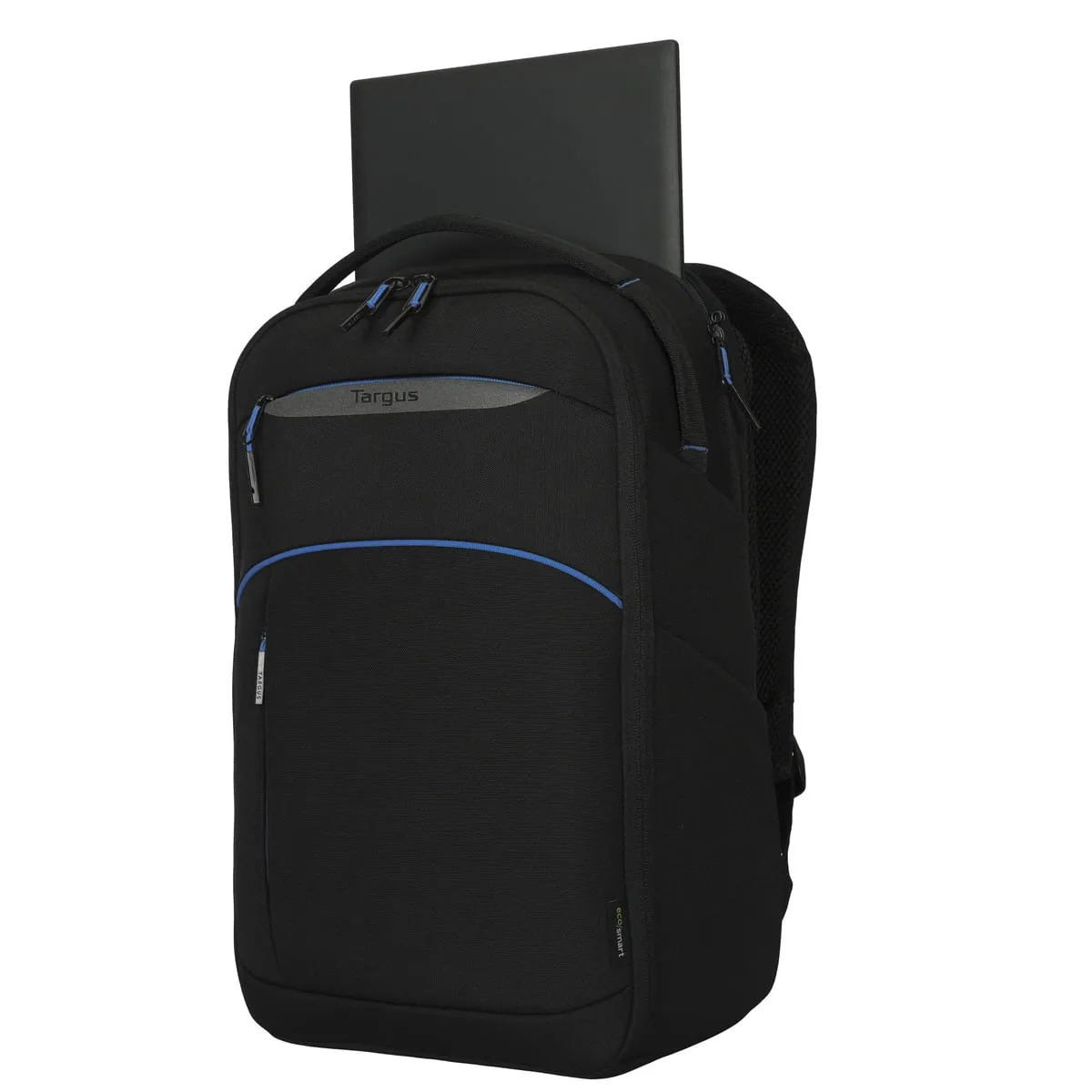 OVERVIEW: For business professionals and students looking for a backpack made from sustainable materials, the EQ Laptop Backpack is an ideal choice. Using 8.4 x 250ml plastic bottles, the backpack is made of 28.2% post-consumer recycled (PCR) polyester. Modern, lightweight, and comfortable, it accommodates laptops up to 16 . The backpack includes a padded compartment for the laptop, a zippered front compartment for easy access to peripherals, and two side pockets for water bottles or an umbrella. Padded shoulder straps offer support for your neck and shoulders, and padded breathable mesh fabric provides more comfort for your back. FEATURES & BENEFITS: 28.2% of the overall product is post-consumer recycled (PCR) polyester. Provides everything a daily commuter needs in a lightweight backpack. Comfortable design eases strain on neck, back, and shoulders. Includes internal padded compartment for laptop, space for files and accessories, a front zippered compartment, and two side pockets. Includes 2-year limited warranty.