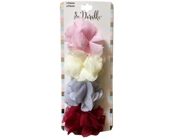Chic Multi-Color Chiffon Flower Clips Set - 4 Pieces