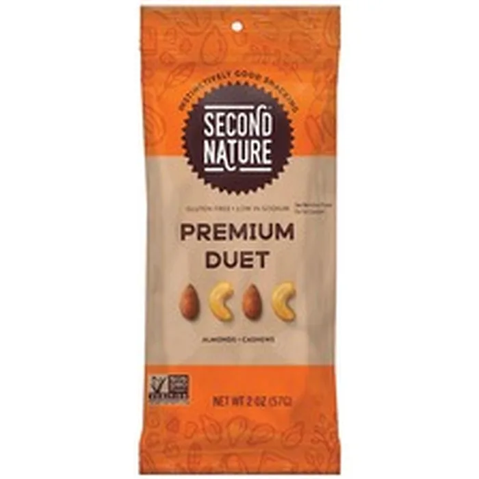 Second Nature Premium Duet Trail Mix - Low Sodium, Gluten-free, No Artificial Flavor, No Artificial Color, Preservative-free - Cashew, Almond - 2 oz - 12 / Box
