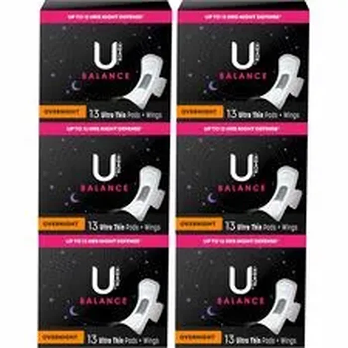 General InformationManufacturer:Kimberly-Clark Corporation Manufacturer Part Number:54912CT Manufacturer Website Address:http://www.kimberly-clark.com Brand Name:U by Kotex Product Name:Ultra Thin Overnight Pads Marketing Information:Give yourself a period pad designed for all-night protection with these Balance Ultra Thin Overnight Pads with Wings. Each overnight pad has a 60 percent larger back for extra protection in any position. These sanitary pads feature U by Kotex's CushionCore that not only absorbs instantly for up to 100 percent leak-free protection but is also infused with 100 percent plant-based charcoal to help stop odor. Unscented pads are dermatologist-tested, contain no harsh ingredients and are made without pesticides, fragrances, lotions, natural rubber latex and elemental chlorine. They offer up to 12 hours of overnight protection so you can focus on getting a good night's rest. Design fits and flexes with your body to deliver outstanding skin comfort. Wings secure the pad in place throughout the night. Feminine pads are individually wrapped in vibrant colors and patterns so you can take them wherever you go. Packaged Quantity:6 / Carton Product Type:Sanitary Napkin