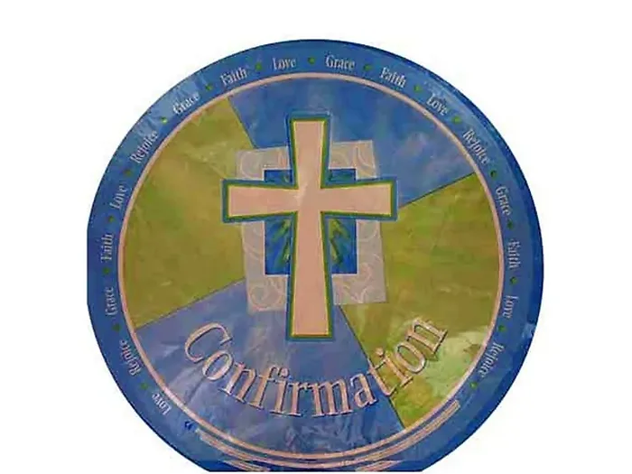 This beautiful pale blue and green balloon is the perfect addition to any Confirmation celebration. It features uplifting sentiments such as Faith, Grace, Love, and Rejoice, all beautifully displayed around a central cross design.