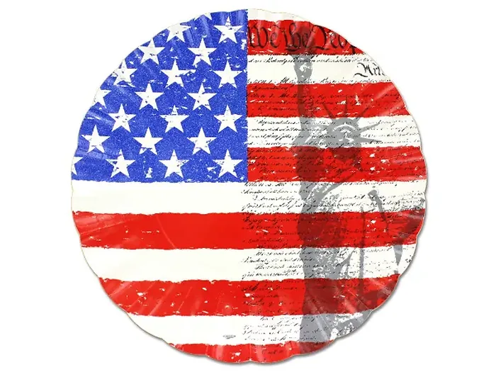 This vibrant serving tray is perfect for your Memorial Day, 4th of July, or Labor Day celebrations. Featuring iconic imagery of the Statue of Liberty, the Declaration of Independence, and the American flag, it adds a festive touch to any picnic or gathering.