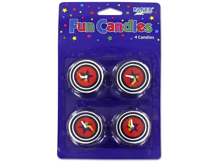 Make your next birthday celebration unforgettable with our Hockey Puck Shaped Birthday Candles. Perfect for a hockey-themed cake, these candles are sure to grab everyone's attention. Each candle boasts a fun hockey puck design that adds a unique touch to any cake. Measuring 1 1/2" in diameter, they fit perfectly on any dessert!