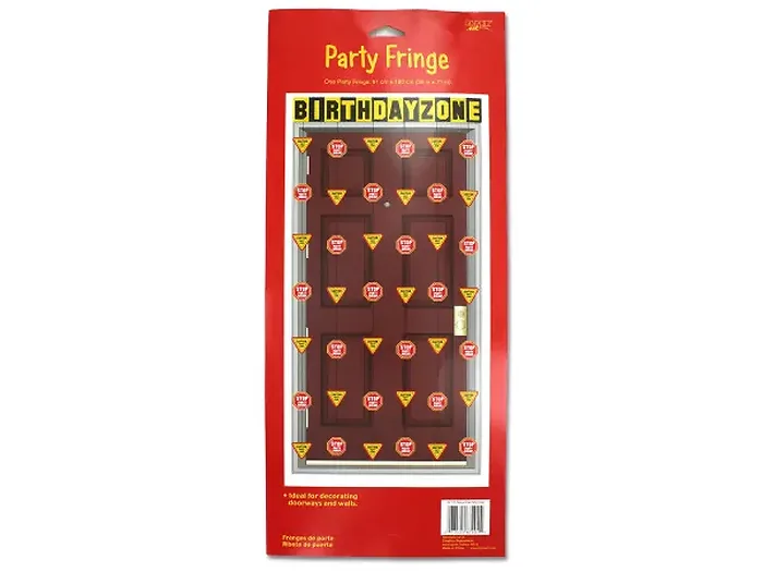 Enhance your Rescue Pals birthday party with this vibrant doorway fringe banner. Featuring the words "Birthday Zone" at the top, it adds a festive touch to your celebration. Hanging from the main banner are eye-catching signs that read "Stop Party Ahead" and "Caution Party Zone", perfect for setting the mood. The banner measures 36" x 71", making it a fantastic focal point for your party entrance.