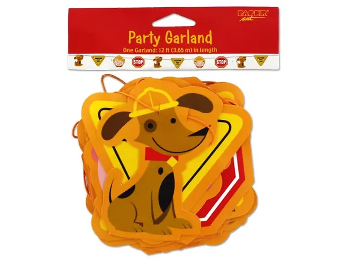 This charming construction-themed garland is part of the "Rescue Pals" party line and is perfect for any construction enthusiast. With its vibrant design featuring caution signs, stop signs, and a lovable rescue dog, this garland adds a playful touch to any party. Whether used for a birthday celebration or a themed gathering, it's sure to delight kids and create lasting memories. The garland measures a generous 12 feet long, making it an eye-catching decoration.