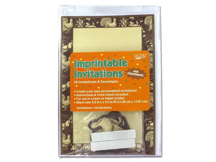 Create personalized Thanksgiving invitations with our Customizable Thanksgiving Invitation Kits. Each kit comes with clear instructions and 3 test sheets to help you perfect your design before printing your invitations. Perfectly suited for both inkjet and laser printers, these invitations measure 8.5" x 5.5". The package includes 10 invitations along with 10 matching envelopes, making it easy to invite your loved ones to your Thanksgiving celebration.