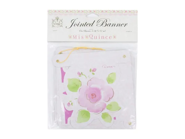 This beautiful jointed banner adds a charming touch to any "Sweet 16" party. With its lovely watercolor design, it perfectly complements the celebratory atmosphere while serving as an essential decorative element. When hung, the banner measures 4 1/4 feet, making it an eye-catching centerpiece for your event.