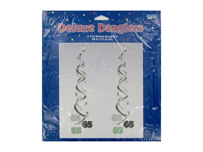 Each dangler boasts vibrant metallic streamers with bold '65' accents, creating a joyous atmosphere for the birthday man or woman. Measuring 4 feet long, they are sure to impress guests and elevate the celebration.