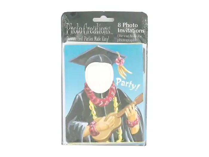 Celebrate your graduation in style with our Personalized Luau Graduation Invitations! This delightful eight-pack of invitations features a unique cut-out face where you can showcase a photo of yourself, adding a fun and personal touch to your invites.