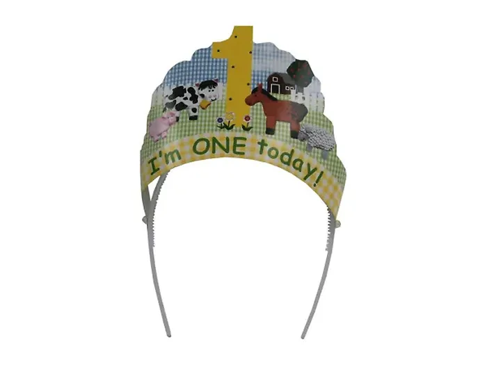 Celebrate your little one's special day with this adorable birthday headband! Designed for the birthday boy or girl, it features a cute farm animals print that adds a whimsical touch to the party. Perfect for photos and festive fun, this headband is a must-have accessory for any first birthday celebration.