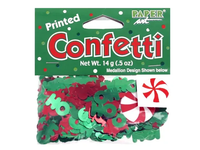 Enhance your holiday cards, gifts, and table settings with our festive Holiday Confetti Assortment. This colorful mix includes various shapes such as Santa Claus silhouettes, cheerful 'HOHO' text, and delightful paper peppermint swirls. Whether you're decorating for a party or adding a special touch to presents, this confetti is perfect for any holiday celebration.