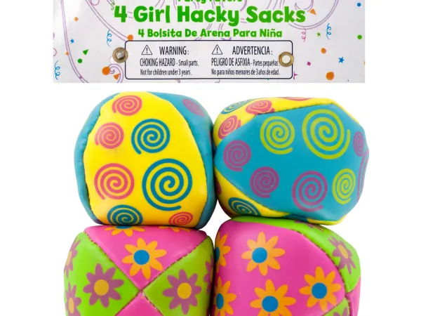 This vibrant cardboard countertop display box features 24 assorted color and pattern kick sacks, perfect for fun and play. The collection includes designs such as yellow happy faces, yin-yang symbols, stripes, and various other appealing patterns. Each sack is crafted from durable cotton knit and filled with plastic pellets, ensuring enjoyable kicking action.