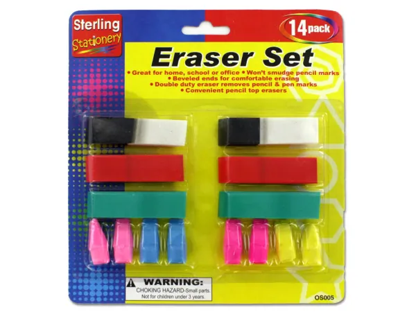 Each eraser measures approximately 1.125" x 1.375", making them easy to handle and carry. Ideal for school supplies or arts and crafts, they are recommended for ages 5 and up and come neatly packaged in a blister pack.