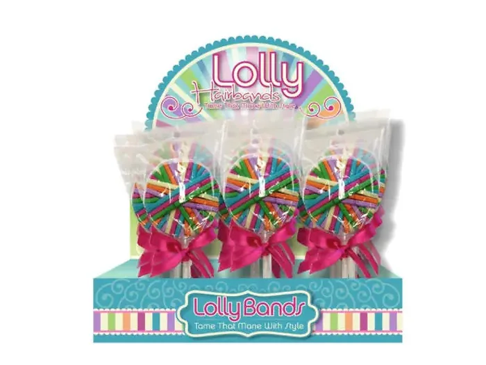 Brighten up your accessory collection with our Lolly Hairbands! These delightful, ouchless cloth-covered hairbands are beautifully wrapped in a fun lollipop design, making them perfect for parties or as charming gifts. The vibrant assortment of colors adds a playful touch, while the easy-access lollipop display helps keep the hairbands organized and ready for use. Ideal for children aged 3 and up. Each set comes in a hanging poly bag, featuring a countertop display of 24 pieces.
