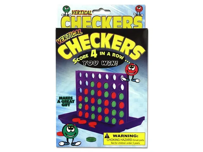 Enjoy hours of entertainment with the Portable Vertical Checkers Game, perfect for travel, waiting rooms, or any place you need some fun! This delightful game features a compact design that makes it easy to carry along on trips. The game includes a sturdy game board and a set of red and green checkers, providing a classic gaming experience.